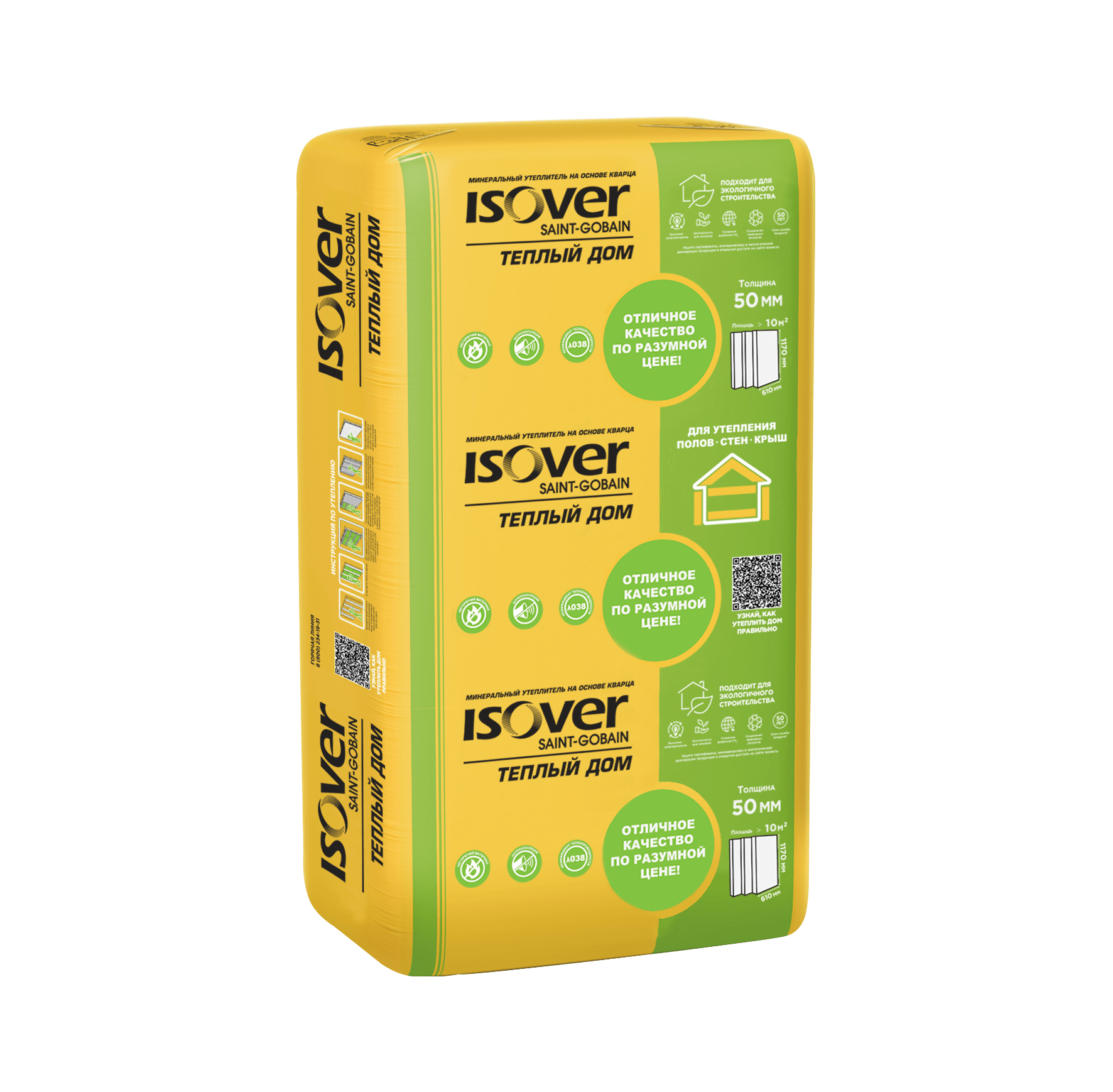 ISOVER ТЕПЛЫЙ ДОМ — тепло- и звукоизоляция из минеральной ваты на основе кварца. Материал производится из природных компонентов: кварца, соды, известняка. Является безопасным материалом для здоровья человека и окружающей среды: сертифицирован для применения в детских и медицинских учреждениях.