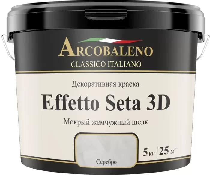 Краска декоративная "Arcobaleno Effetto Seta 3D" база: серебро 5 кг