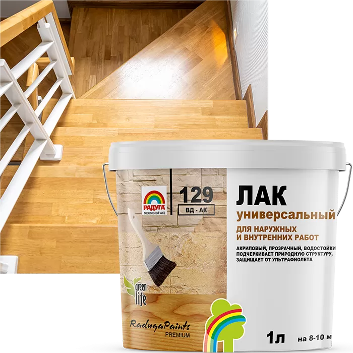 Лак для дерева полуглянцевый "Радуга-129" для наружних и внутренних работ акриловый 3 кг