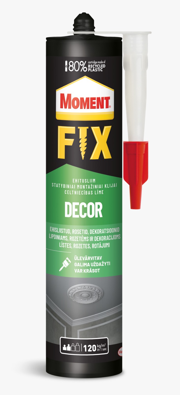 Момент FIX Decor – это акриловый монтажный клей без растворителей, для внутреннего применения, предназначенный для приклеивания декоративных элементов, багетов, лепнины, фризов из таких материалов, как пенополистирол, пенопласт, гипс, гипсокартон, пробка и других поглощающих влагу материалов. Клеить можно на поглощающие влагу материалы: бетон, штукатурка, кирпич, дерево и другие.