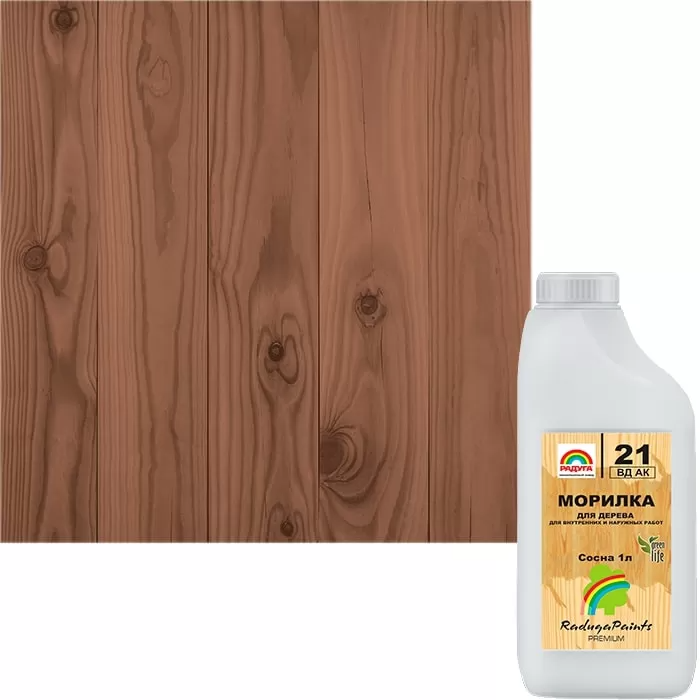Морилка для дерева "Радуга-21" акриловая, цвет дуб 1 л