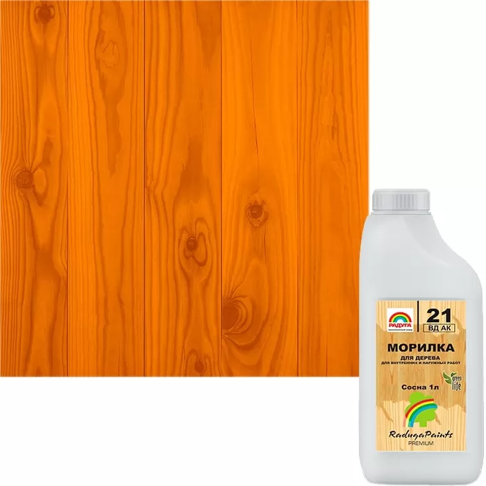 Морилка для дерева "Радуга-21" акриловая, цвет лиственница 1 л