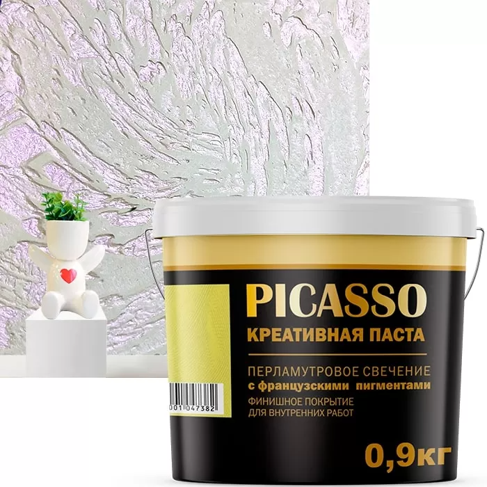 Паста Picasso придает легкий блеск и переливы цвета, подчеркивая контуры рисунка и обогащая цветовую гамму. Создает эффект мягкого свечения. Наносить поверх фактурной или гладкой декоративной штукатурки, а также поверх бетона, кирпича, ДВП, ДСП и дерева. Легко наносится без подтеков даже при достаточно толстом слое. Стойка к истиранию, экологически чиста, экономно расходуется. Палитра из шести готовых оттенков: Blue, Green, Violet, Gold, Pink, Pearl.
