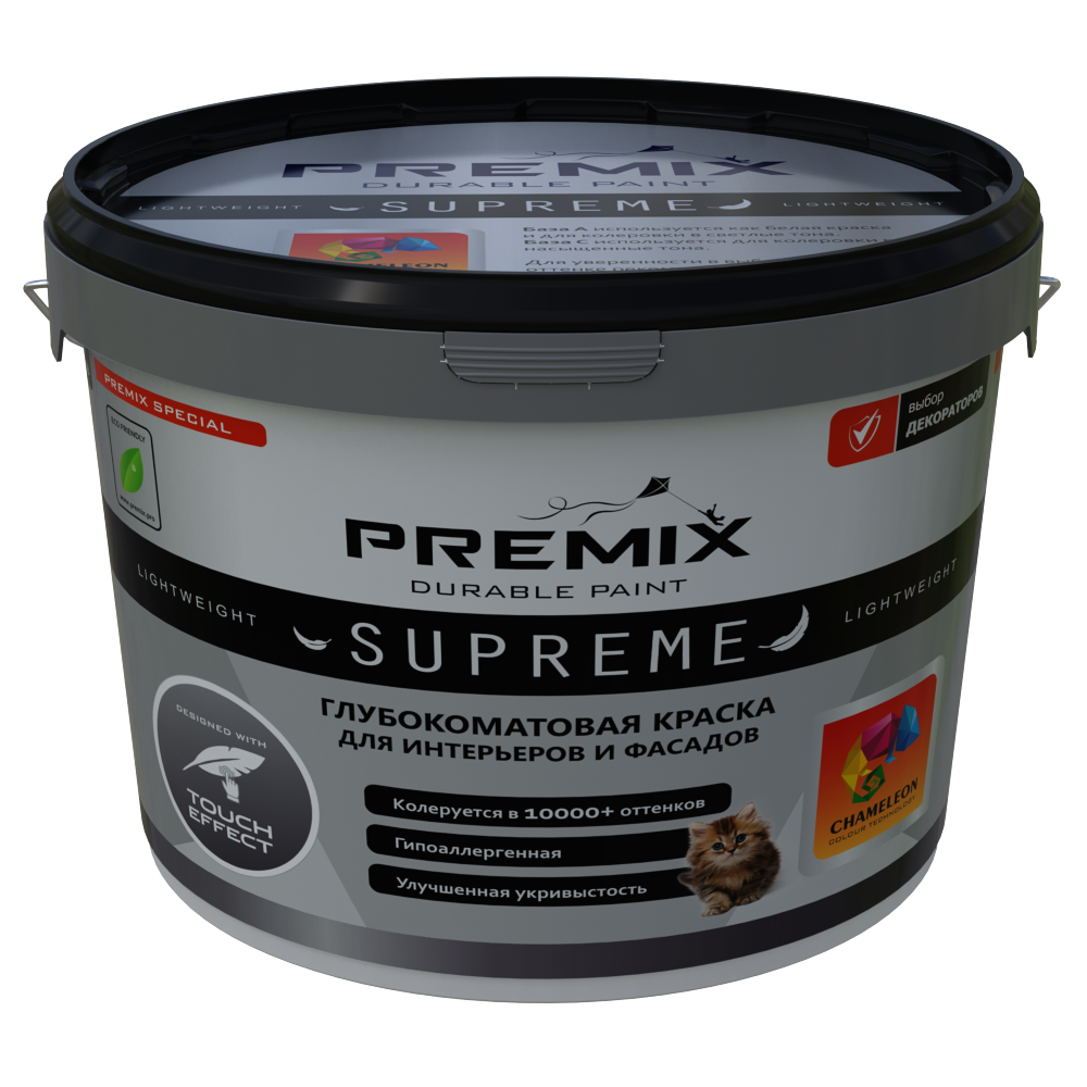 Интерьерная глубокоматовая экологичная краска, придающая поверхности бархатистый эффект. Применяется для окраски стен и потолков в сухих помещениях (гостиных, детских комнатах, спальнях и других подобных помещениях).