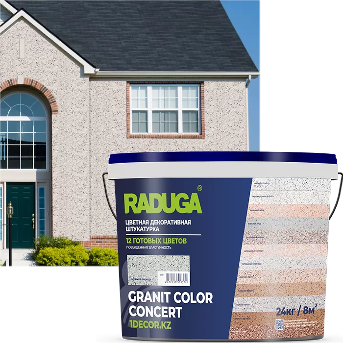 Эффект натурального гранита в двенадцати эксклюзивных готовых цветах – это монументальное украшение. Более того – это штукатурка, выдерживающая мелкие повреждения, эластичная, способная скрыть мелкие дефекты поверхности и трещины до 2 мм. Отличается высокой механической прочностью и долговечностью, атмосферостойкостью и влагостойкостью. Можно использовать как для фасадов, так и для интерьеров.